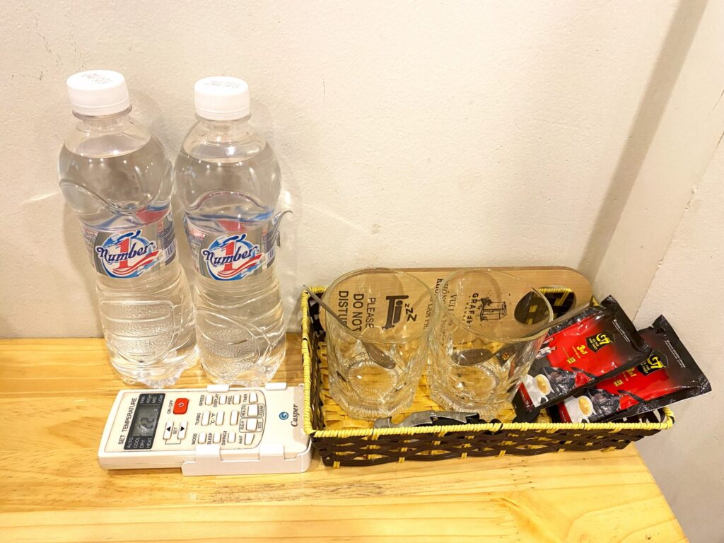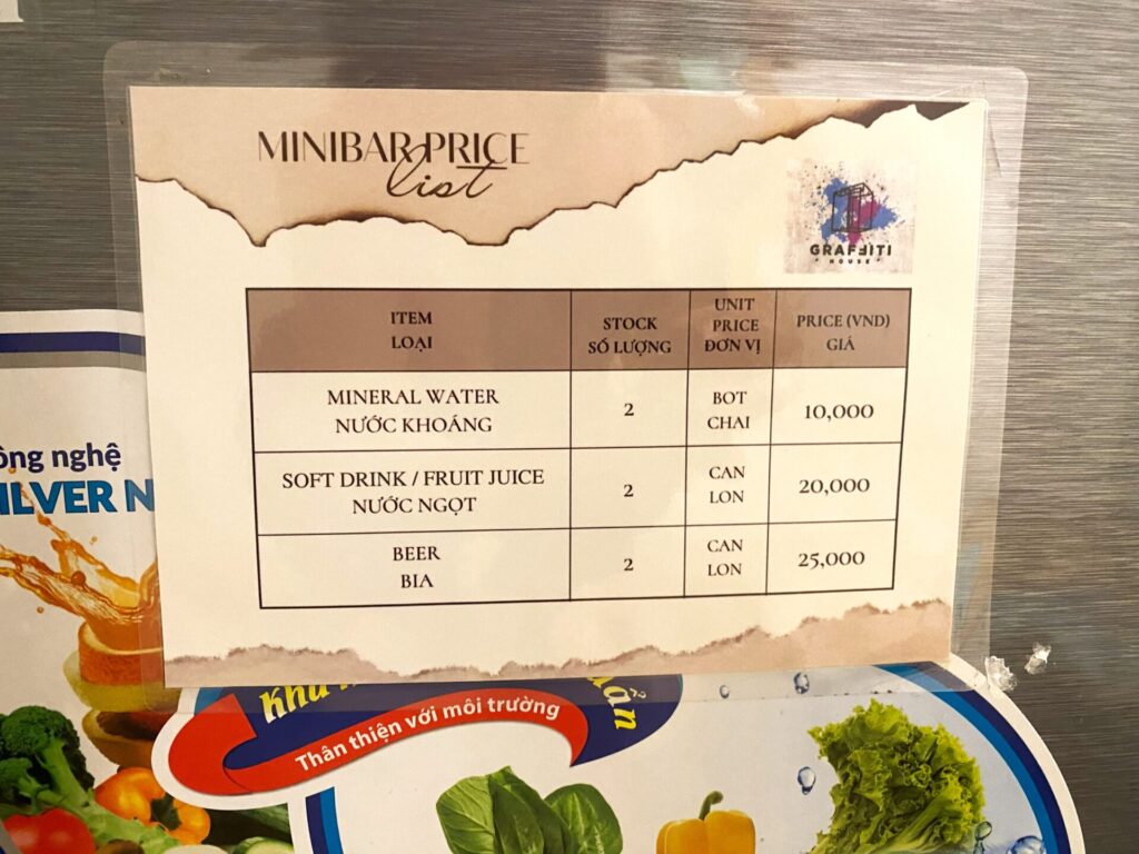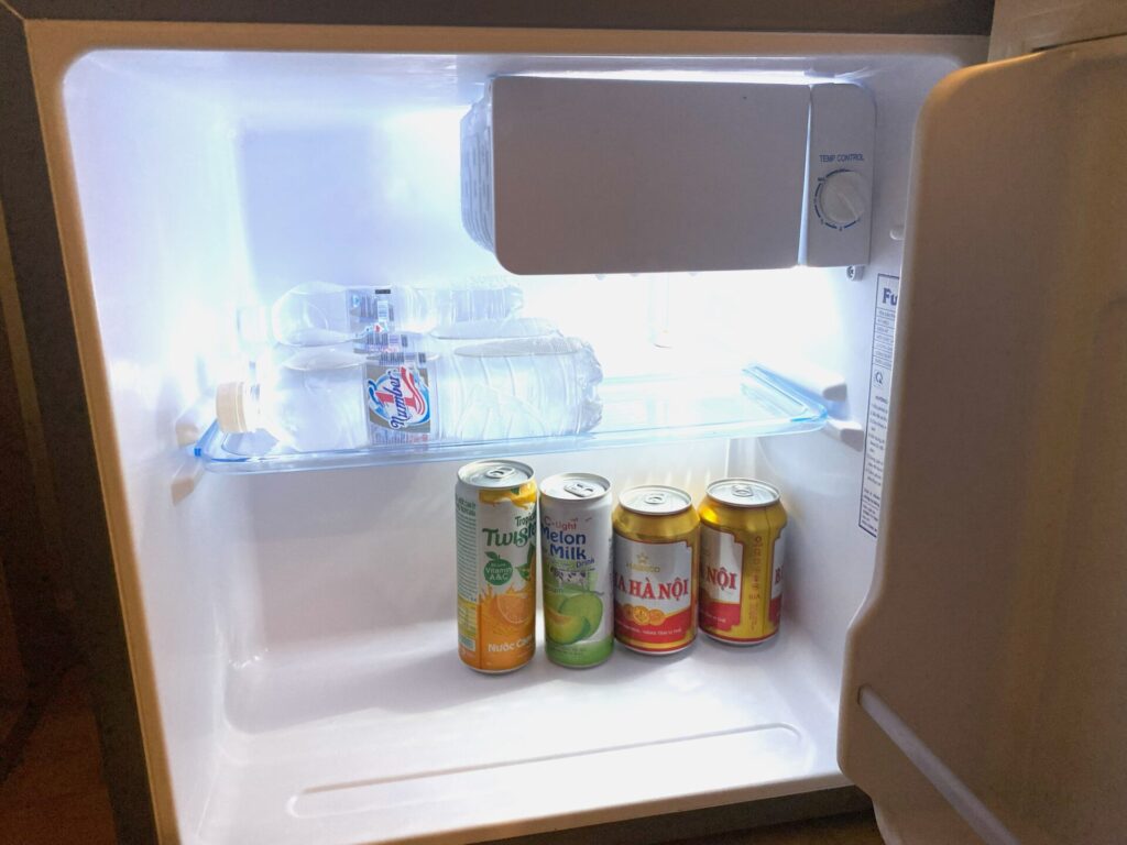 冷蔵庫内のドリンクは有料。