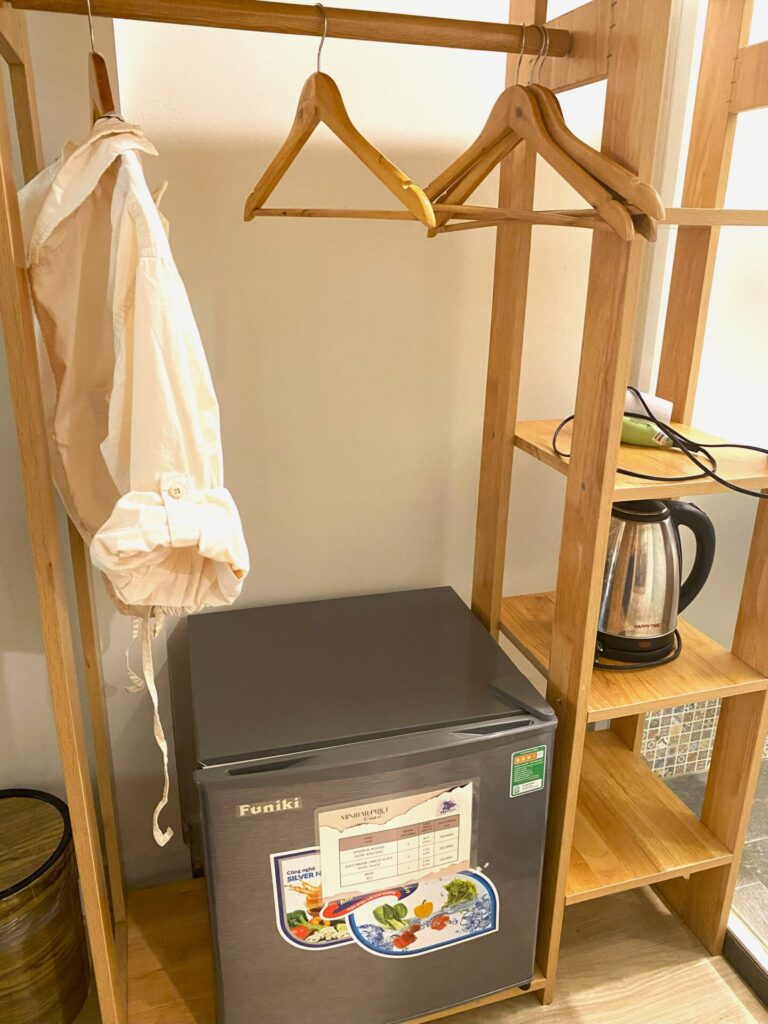 ハンガー多め!ケトル、ドライヤー、冷蔵庫。