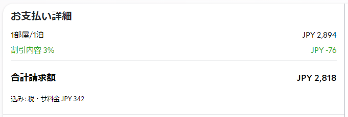 大人1名、子ども2名で予約した料金です。