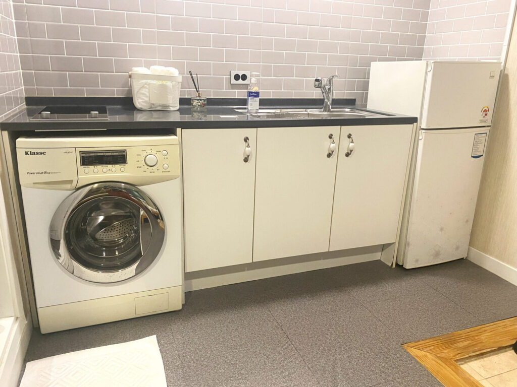 - 洗濯機があり、洗剤もある